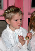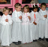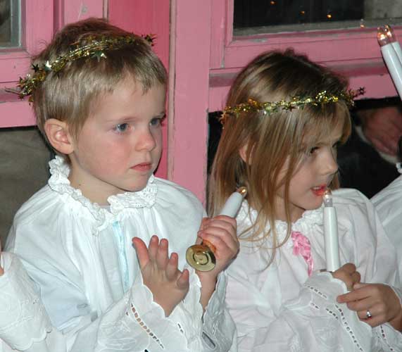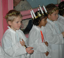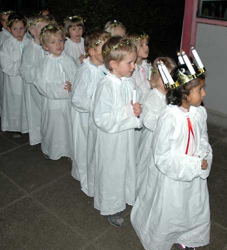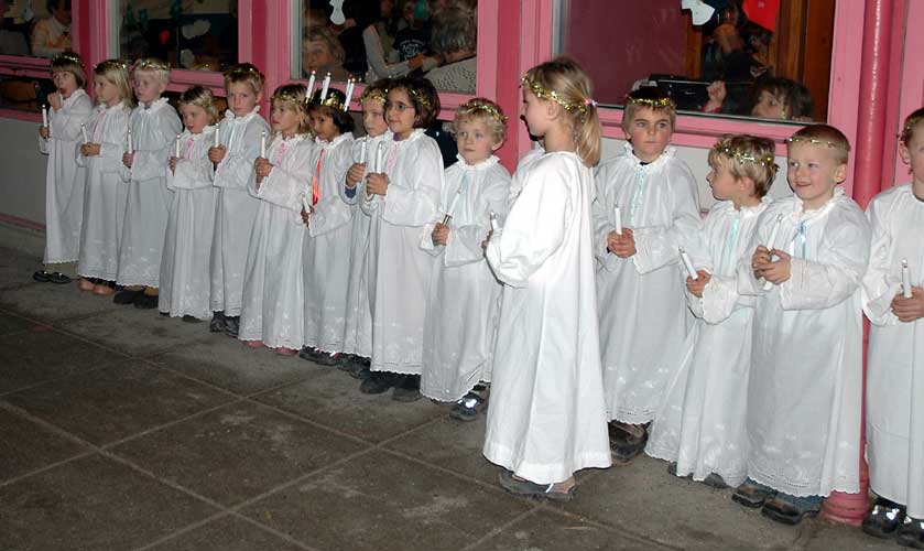 Efter luciaoptoget var der dans om juletræet med julemand og slikposer
